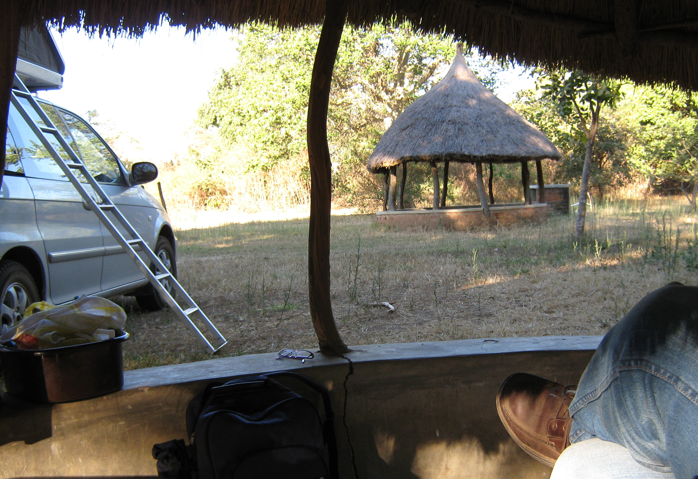 We had to charge our car battery as it was flat, before we could leave, this particular morning. We were using a fridge that was connected to the car battery. Luckily we had what we needed to charge it. We eventually left Cubu Cabins at 10.10. I was sad to go even although I was scared of the noises and animals, especially the hippo. It had sounded so close this last night and morning. It was one of the most beautiful places I visited on our travels in Africa.