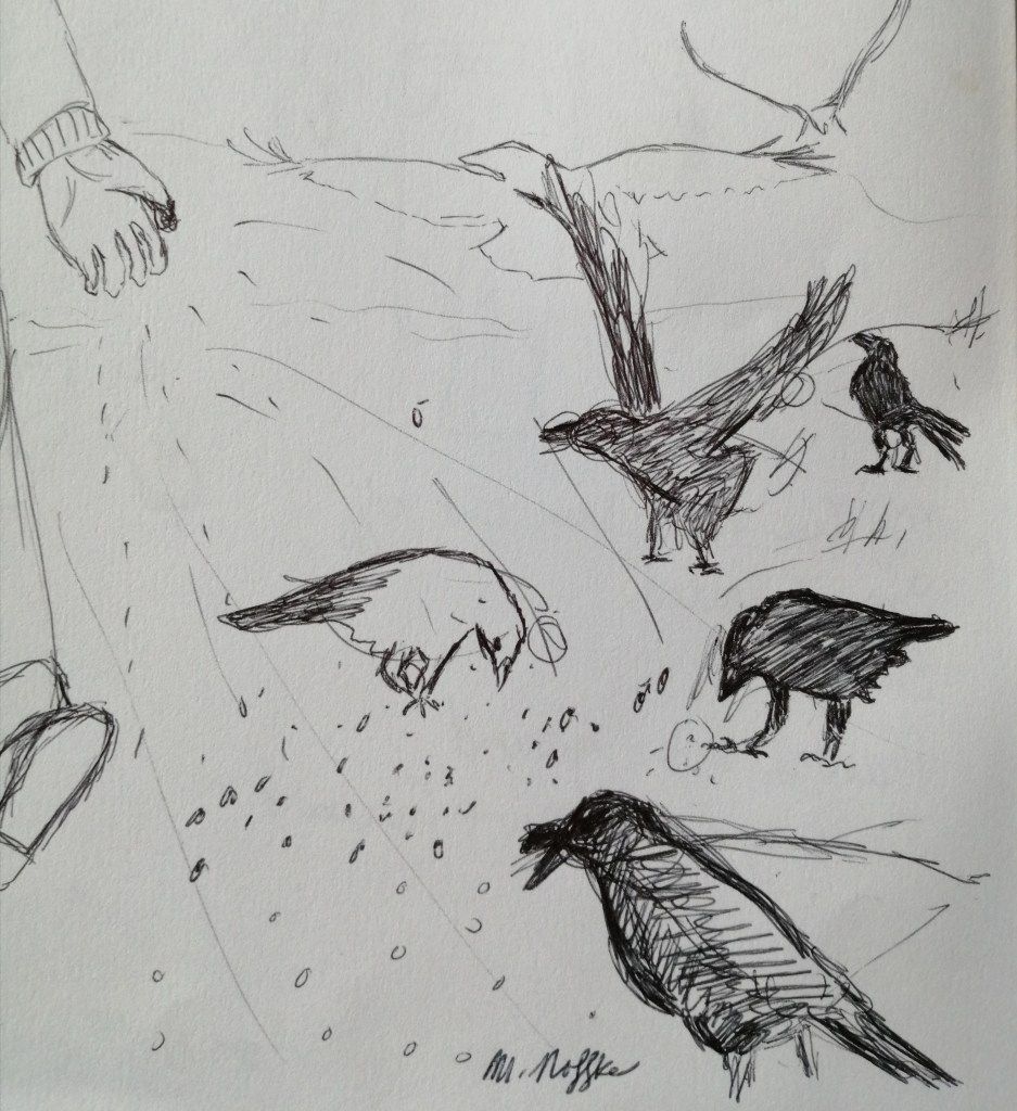 Putting plans into actions Is much like sowing seeds My critical thoughts Attack my ideas Like birds pecking At seeds, Eating away at my own goodness. How many seeds are left to grow? If I want to see a harvest I need to to put up a 'scarecrow' Self-doubt is a crazy thing We do it to ourselves Yet with loving tenderness We can alter our perspective of ourselves. Looking after ourselves is as important As a farmer tending his lands.