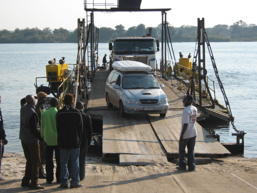 We breathed a sigh of relief as we finished our paperwork. We enthusiastically jumped back into our car ready to embark on a short ferry ride across the river to Botswana and drove up to the crossing where there was a man dressed in uniform with a rifle (AK47). We felt very uneasy as we had not seen this sort of display anywhere else. The man started shouting at me and waving the rifle in my face through the window and the little English I heard was โyou out the carโ โyou out the car.โ I was not keen to get out and I said โI donโt understand whyโ and he shouted back at me โyou out the carโ โyou stay here.โ At this point I was very confused I thought there must be something the matter with my passport.