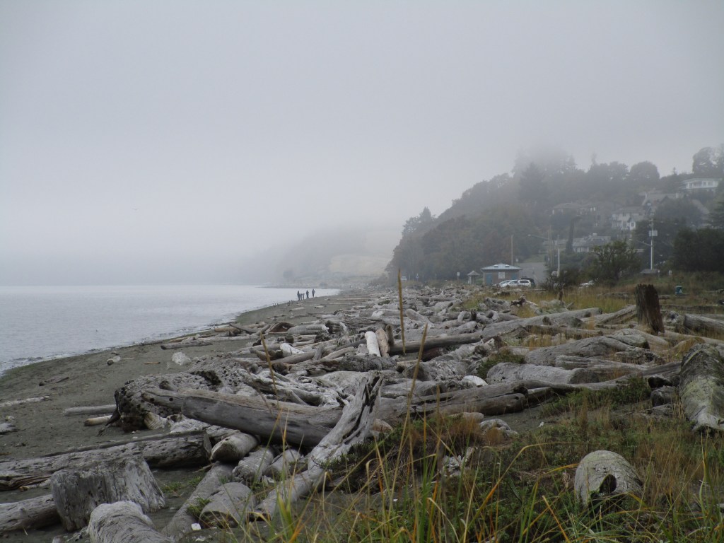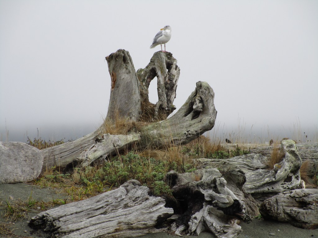 Esquimalt lagoon is situated in Colwood, near Victoria City and is a migratory bird sanctuary. The salt water washes up into the lagoon from the sea. We visited on a soft, misty day. I was fascinated by all the old logs that had washed up on the seashore, along the coast. My heart ached as I searched for the meaning to this cemetery of trees. They reminded me of a burial sight where bones have been exhumed. Once Great Trees standing tall now melancholic-ally lying stranded, shredded of their dignity. I am aware that everything in nature is or was a living organism in a very tightly knitted community. That is why I felt this sadness. It is a sadness for the whole earth: humans and all living species and what it indicates. You can check out the History of Colwood if you are interested.