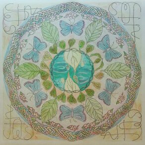 Metamorphosis. Pen, pencil and ink mandala of the cycle of life, by Morag Noffke 2006