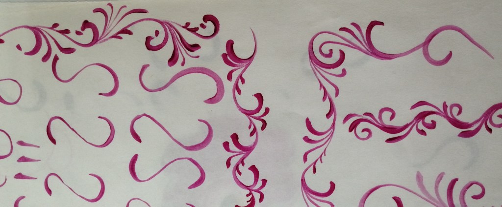 Here is my gallery showcasing me practicing folk art brushstrokes for my final tray I painted. I attended classes when my oldest was only months old. I had a hunger to be creative but I had no inspiration. Meeting with others helped me get out of my funk. I went on to designing my own table top image years later.